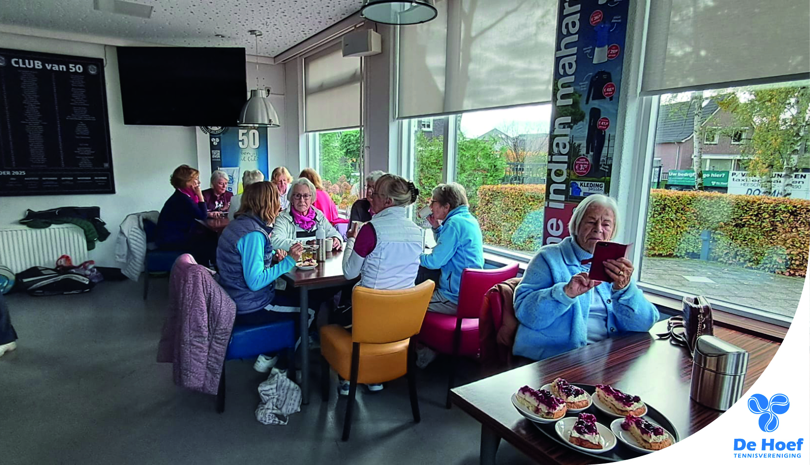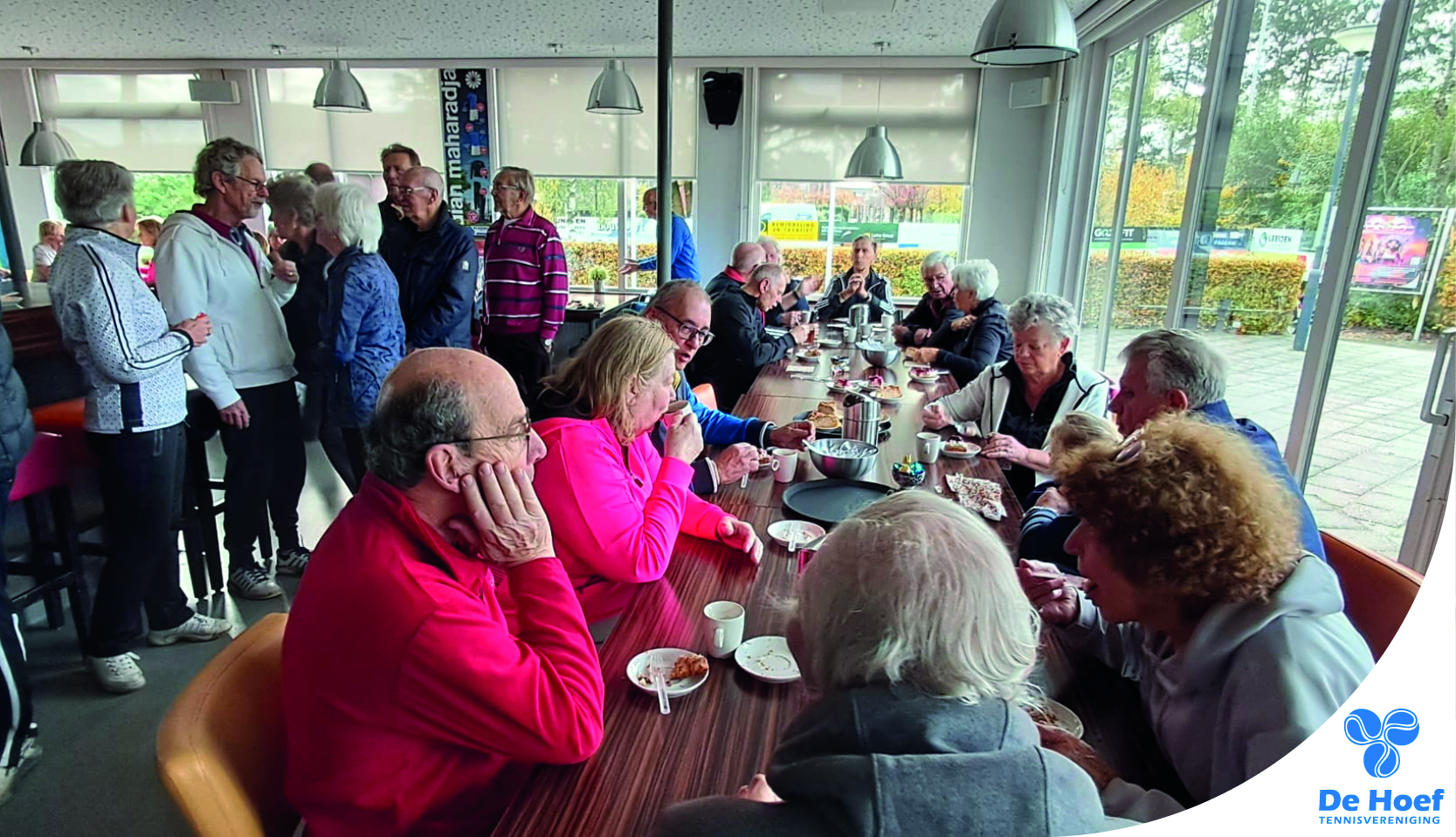 Het gaat vooral om de afloop: het gezellig koffiedrinken met elkaar. “Wij hebben nu echt een leuke groep”, vertelt Truus. Voor de gelegenheid is er vandaag taart gebakken en iedereen is in z'n nopjes. Tussen de koffie en gezelligheid door verklapt ze haar geheim om zo fit te blijven. “Veel bewegen, goed eten en ga tennissen!”