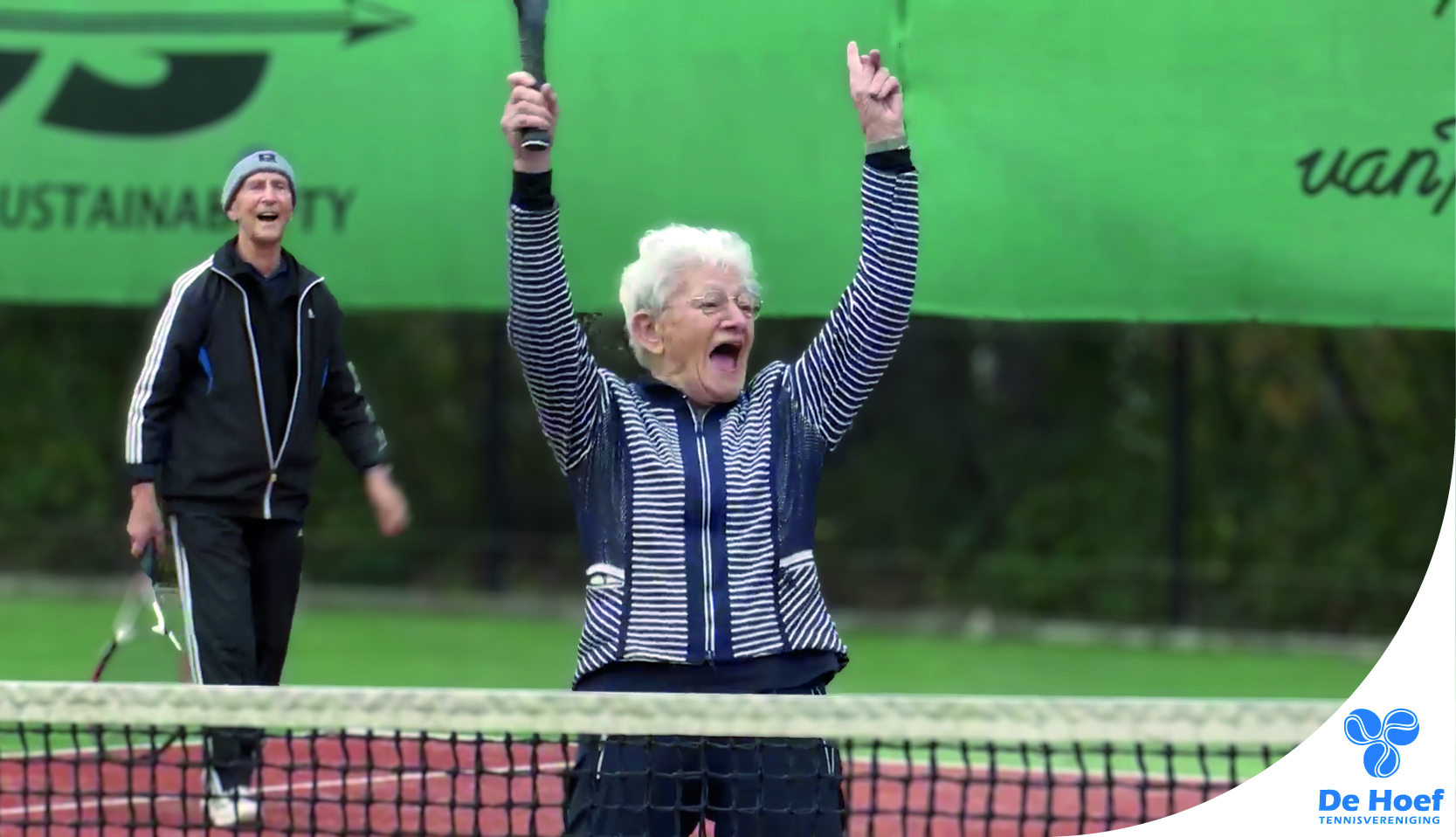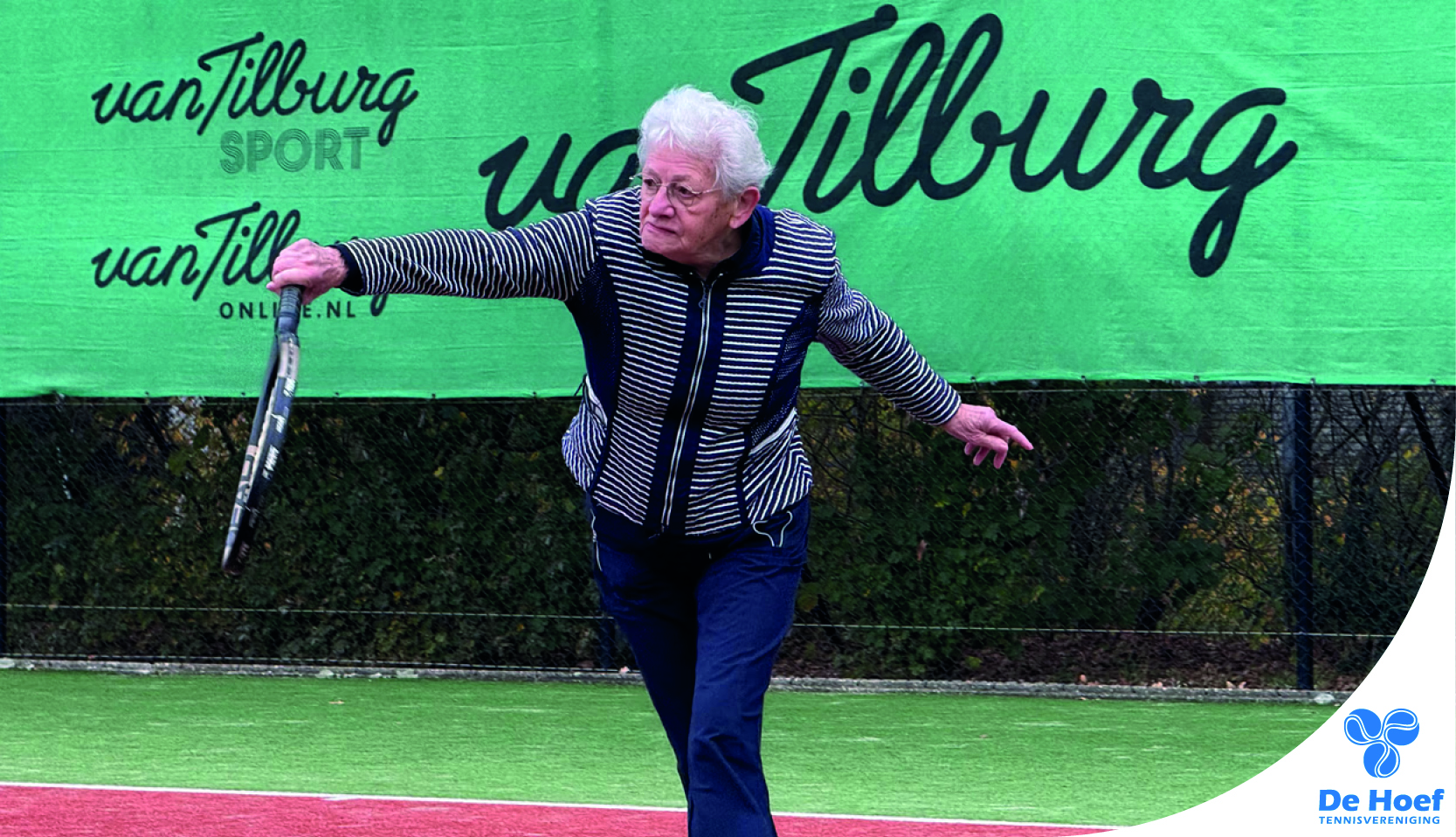 Truus van Oort is het allereerste lid van TV De Hoef. “Ik ben al 56 jaar lid. Ik was bij de oprichtingsvergadering”, vertelt ze. “Ik heb lidmaatschapsnummer 1.” Of ze de oudste tennisser van Nederland is kon de tennisbond niet zeggen, maar ze moet één van de oudsten zijn.